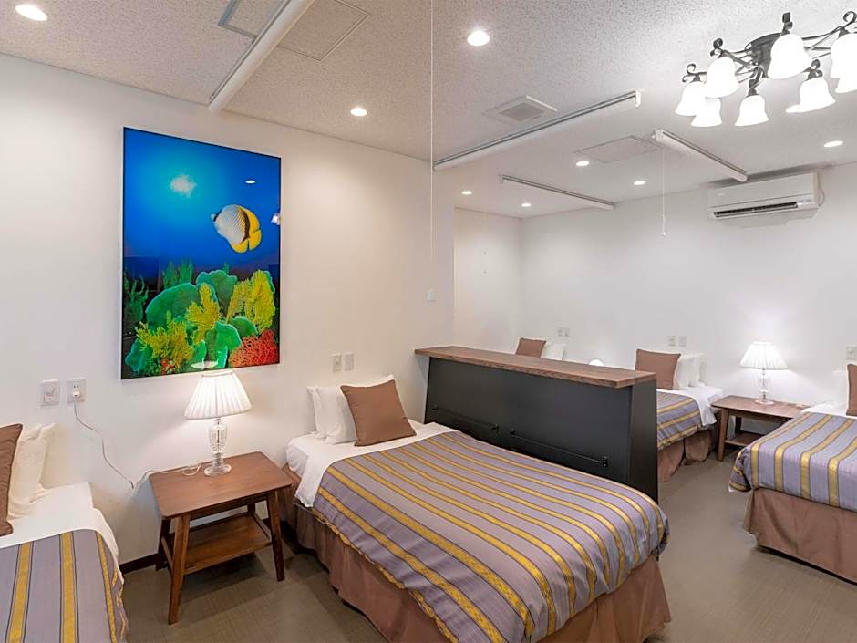The spacious family room provides air conditioning, a safe deposit box, as well as a private bathroom featuring a shower and a hairdryer. Guests can make meals in the fully equipped kitchenette that features a refrigerator, a microwave and an electric kettle. This family room has pajamas, heating and a flat-screen TV. The unit offers 5 beds.